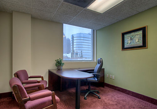 “Recession special: All inclusive window offices $595.00/month including parking” Private Furnished Offices • Personalized, Professional Telephone Answering • Integrated 24 Hour Voice Mail • Courteous Receptionist • Tasteful Reception Areas and Conference Rooms • High Speed Internet Access • 24-hour Building Access • Local Telephone Number • Administrative Assistants • Convenient Parking • Kitchen/Break Areas with Complimentary Coffee • Complete Mail/ Shipping Facility • Utilities, Janitorial, Maintenance