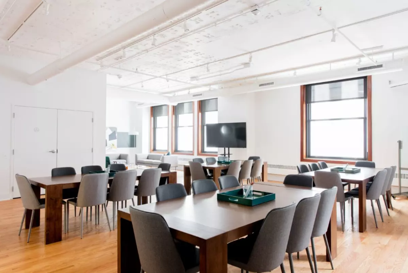 Located in the core of Chicago’s central business district, this easily adaptable space for large teams features a 65-inch television, two 100-inch projection screens and three dry erase boards. A lounge and breakout table provides seating for an additional 10 guests. Room setup can be configured to seat 28 conference style, 40 theater style or reserved in conjunction with Room 2 and/or Room 3 to provide extra seating and breakout space. Revival Food Hall, located on the first floor, boasts 15 fast-casual stalls featuring many of Chicago’s favorite neighborhood restaurants in a grab-and-go setting, plus a handful of all-new concepts debuting from several acclaimed Chicago chefs. This location is easily accessible by all major CTA rail and bus lines as well as just a half a mile from Metra’s Union and Ogilvie Stations.