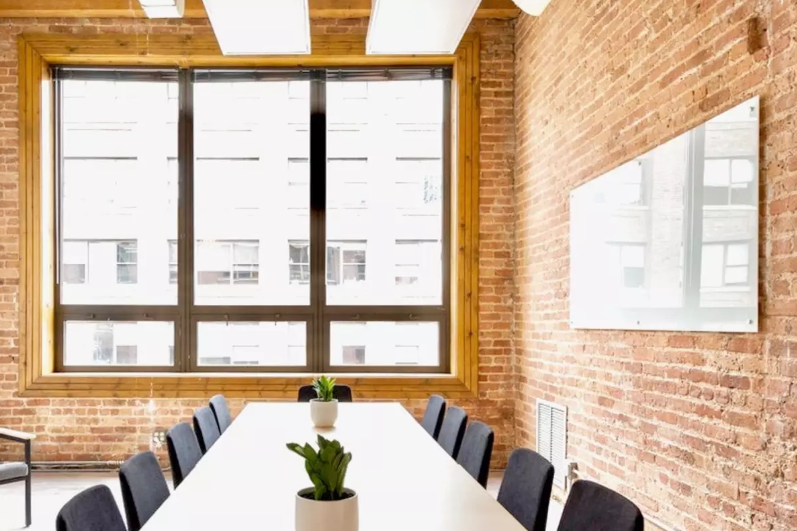 Exposed brick walls and expansive windows greet you from this beautiful River North space. Padded seats, multiple whiteboards and TV for presenting make this the perfect space for client meetings, off-sites and group workshops. Steps away from the CTA brown line with plenty of street parking make this a perfect meeting location for teams coming from every direction. It can be rented in tandem with ‘Room 1’ next door to add breakout space and more room for larger, long-term, or focus group sessions.