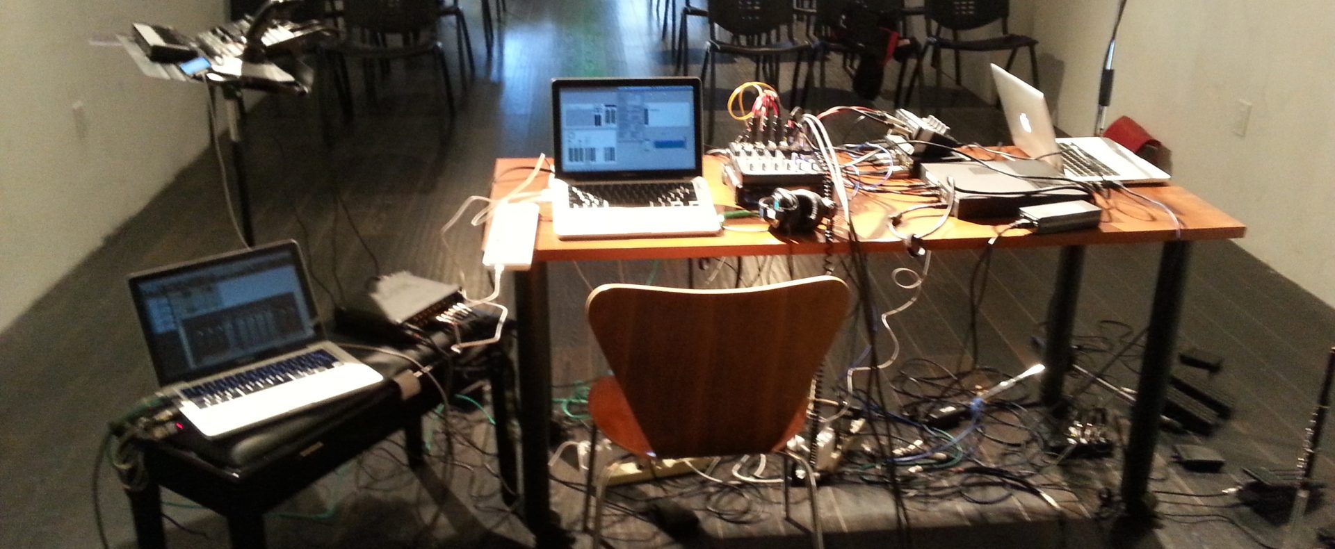The Center was conceived in 2011 by composer-performers Adam Fong and Brent Miller. Through their experience as both artists and administrators in the Bay Area new music scene, and resulting from a thorough community needs assessment, they designed a plan to provide a flexible space for new music: during the day the Center functions as an administrative and research hub, a space to work, meet, learn, and rehearse; in the evenings it hosts workshops and affordably-priced concerts of innovative music.