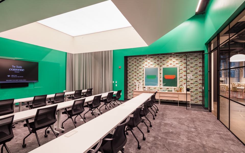 Located in the heart of Chicago’s “Loop,” Convene at 16 West Adams Street is the most conveniently located meeting, event, and flexible work space sitting in between two subway lines at the nexus of Chicago’s ‘L’ system and within close walking distance to the city’s best restaurants and hotels. With street-level access, this multi-level space is inspired by the city grid, organic curves of the lake and provides an upscale work environment to maximize comfort, productivity, and collaboration. Convene at 16 West Adams Street can host up to 335 people with a variety of tech-enabled meeting rooms along with lounge, dining, and reception areas. Convene is changing the way Chicago meets and works with heightened levels of service, luxury, and comfort in a contemporary, “industrial chic” environment.