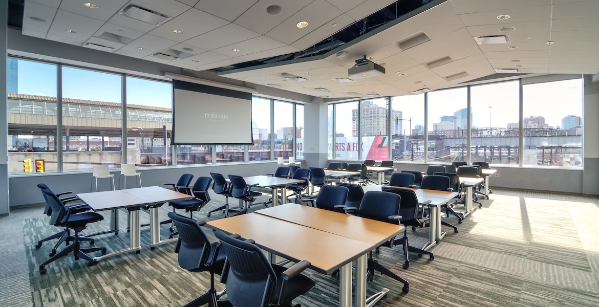 Convene at Cira Centre is the most convenient place to host a meeting for both Philadelphia locals and NorthEast business commuters. The ultra-quiet meeting and conference venue is connected to the 30th Street Station, where the Amtrak, Regional Rail and the Subway lines intersect. With rooms that have a maximum capacity for up to 200 seated guests, Cira Center can host a variety of large conferences, medium breakouts, or small huddles. As the nation’s first-ever LEED-certified meeting space, it also has great views of the local art museum and University City, making this a prime venue for your next town hall, team offite or client summit.