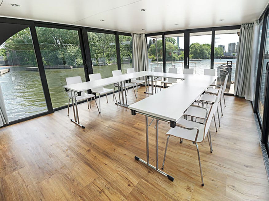 With that in mind, The FLOATING OFFICE BERLIN was designed and built from the ground up to offer modern, high-end meeting space in a peaceful and inspiring environment of the City Marina Berlin-Rummelsburg.