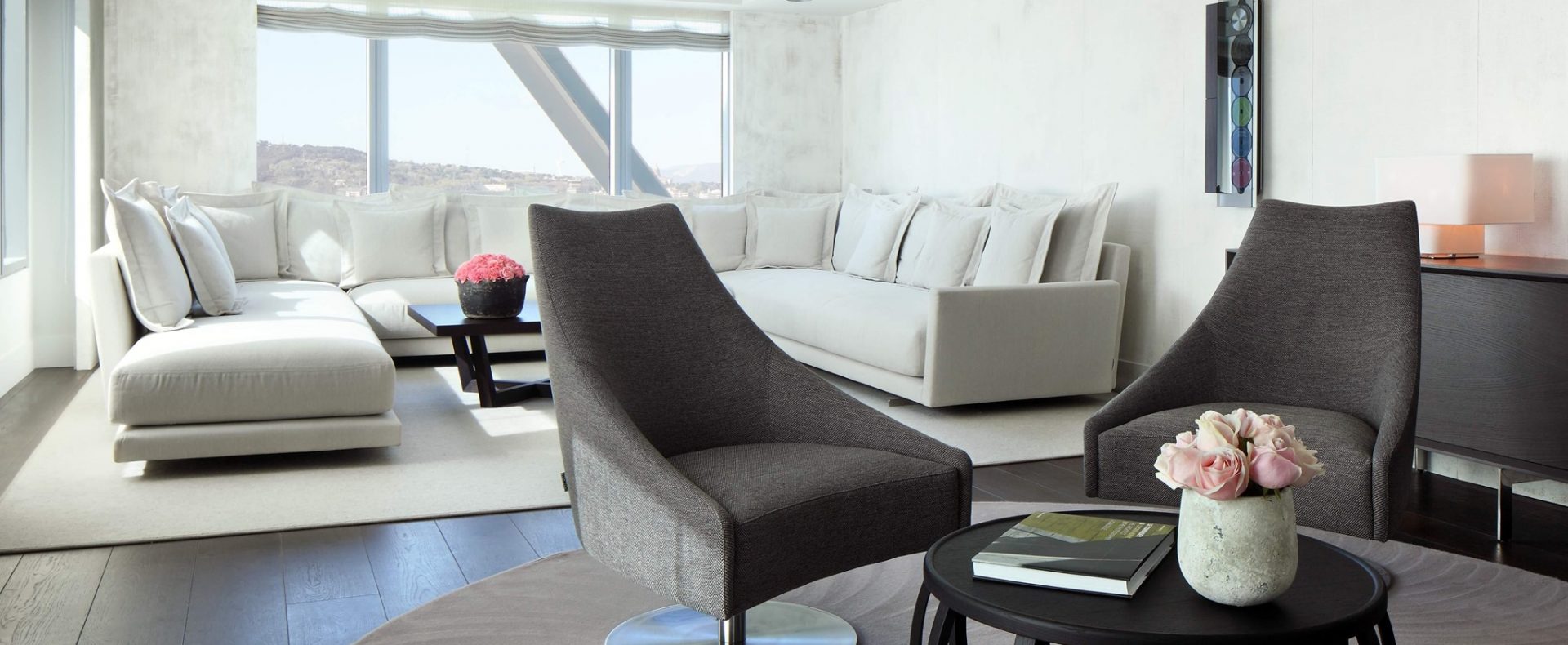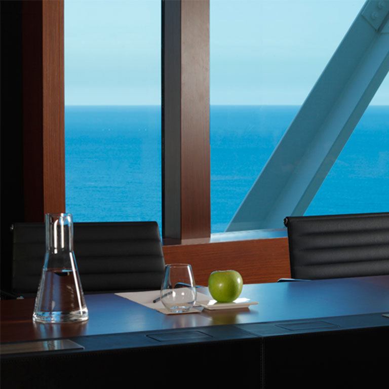 The art of working featuring frontal sea views is possible at Hotel Arts’s workspaces and public areas.