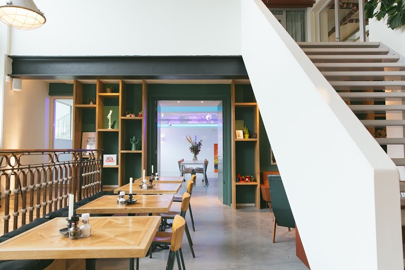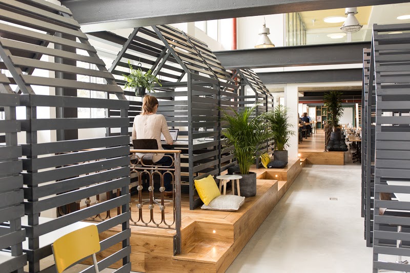 Sitting in the old GAK building at Bos & Lommerplantsoen, it is a bright and modern renovated property with a rough edge giving it a bohemian feel. It is divided into two layers, the ground floor and the basement. On the ground floor you will find several work spaces and open hallways. The on-site restaurant is a neighborhood icon where the locals hang out with the workers in a vibrant mix of residents, business folks and eclectic entrepreneurs. You can grab a coffee, munch on some decadent food or cozy up for an evening of dinner and drinks.