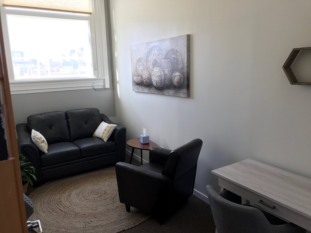 Our office is located on the 3rd floor of a historic building. We have three treatment rooms that boast high ceilings and lots of natural light. One of our rooms is ready to host large groups and workshops.