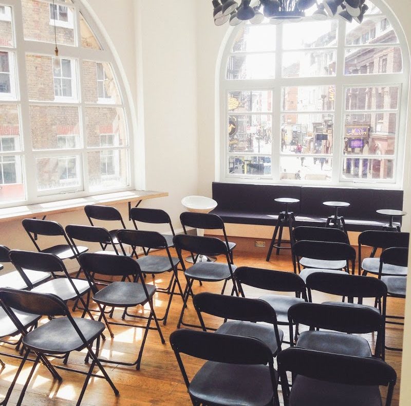 Thirdly, we have probably the best located and loveliest events space in Soho. Everyone knows exactly where it is (if you don’t, it’s the huge windows above Ed’s Diner, facing down Old Compton Street, with the fancy chandelier). Also probably the most light-crunched space in Soho, with iconic views, it is so close to the action on the OCS that you can almost lick it. It’s one of those ‘has to be seen to be believed’ spaces – so come and see and believe! And it is perfect for launches/shoots/events/conferences/meetings/castings/rehearsals/workshops/etc.