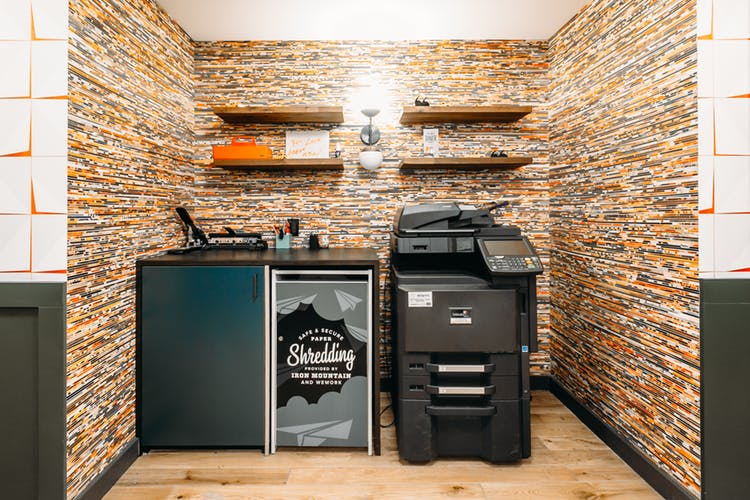 – Every floor has its own space stocked with a business-class printer, office supplies, and paper shredder.