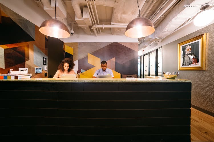 On one of the most high-powered streets in the nation’s capital, WeWork’s K Street office space is home to a diverse array of businesses. WeWork occupies two full floors of this handsome building, which features a detailed stone façade rising from an elegant granite base. You’ll find everyone from law firms to nonprofits to lobbyists here, just a quick stroll from the White House. This central location—accessible by the Farragut North and Farragut West Metro stations—allows for plenty of great dining options, including a string of food trucks that bring gourmet touches to casual meals. For power lunches, there are plenty of see-and-be-seen restaurants on the nearby streets too. If you wantan inspiring office space in one of the most enviable locations in DC, it’s hard to beat WeWork K Street.