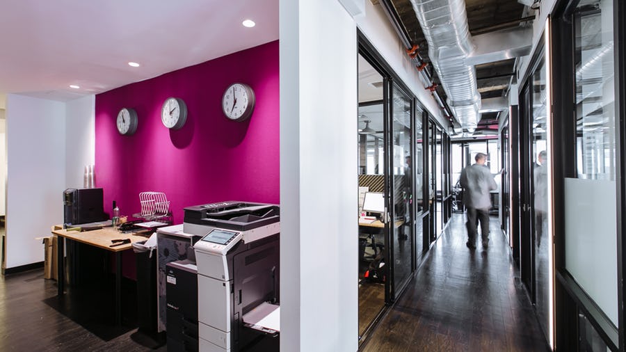 – Every floor has its own space stocked with a business-class printer, office supplies, and paper shredder.