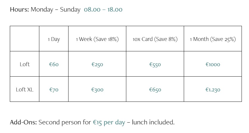 What’s included? Book a day, week, or even month in a WorkLoft that includes: